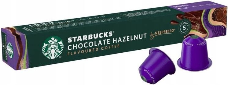 Kapsułki do Nespresso Starbucks Chocolate Hazelnut - opakowanie 10 sztuk Starbucks Chocolate Hazelnut kapsułki do Nespresso® 10 szt. to aromatyczna propozycja dla miłośników kaw smakowych, którzy cenią deserowy charakter, aksamitną teksturę i wyraźne nuty słodkie. Ta kompozycja łączy wysokiej …