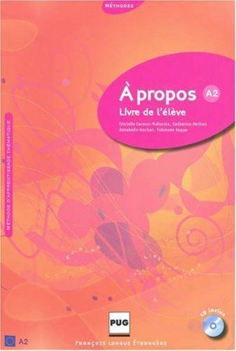 Public: La méthode A propos A2 est destinée a de grands adolescents et adultes ayant atteint le niveau A1 du CECR (Cadre européen commun de référence pour les langues) et vise l'acquisition des compétences décrites dans le niveau A2. Elle permet de se préparer au DELF A2. Résumé: Suite logique de A …