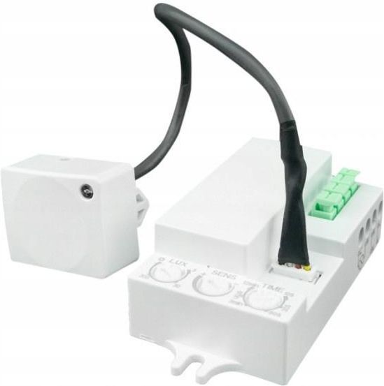 Mikrofalowy czujnik ruchu, z mini sensorem mikrofalowy na przewodzie model CM-1B do zastosowań wewnątrz pomieszczeń, w białym kolorze. Czujnik ruchu CM-2B to wszechstronne urządzenie, które sprawdzi się w każdym gospodarstwie domowym. Przystosowany jest do obsługi obciążenia do 300W, dzięki czemu mamy możliwość podłączenia czujnika pod większość instalacji oświetleniowych. Zapewnia elastyczność poprzez oferowanie kąta wykrywania na poziomie 180° lub 360°, umożliwiając dostosowanie do preferowanego zakresu obszaru. Czas reakcji czujnika na ruch wynosi od 0.6 do 1.5 sekundy, co oznacza szybką odpowiedź na zauważone zmiany. Ponadto, czujnik wykazuje wrażliwość na światło otoczenia w zakresie od 3 do 2000 LUX, umożliwiając jego działanie w zróżnicowanych warunkach oświetleniowych. Czujnik mikrofalowy CM-2B działa na zasadzie nadawania i odbierania fal mikrofalowych, a następnie analizowania zmian w ich sygnale. Dzięki temu można wykryć nawet najmniejsze ruchy obiektów w obszarze działania czujnika. Jest bardzo czuły i energooszczędny, pobiera zaledwie 0,9W. Czujnik można zamontować na ścianie na wysokości 1-3,5 metra lub na suficie na wysokości 2-8 metra. Zasięg czujnika zamontowanego na ścianie wynosi od 5 do 15 metrów, zaś na suficie od 1 do 8 metrów. Podstawowe zalety czujki mikrofalowej: montaż ścienny lub sufitowy, ustawienie długości czasu świecenia po wykryciu ruchu, ustawienie pory załączania się czujnika, kąt wykrywania 180°/360°, regulacja czułości. Podstawowe zastosowanie czujki mikrofalowej: czujnik ruchu do włączania oświetlenia wewnątrz, czujka ruchu do oświetlenia w garażu, czujka PIR do włączania lampy przed wejściem do domu, włącznik na ruch oświetlenia w spiżarni, kotłowni. Podstawowe parametry czujki mikrofalowej: Napięcie zasilania: AC 230V, Pobór mocy: 0,9W, Maksymalne obciążenie: do 300 Watt, Kąt wykrywania detekcji: 180°/360°, Czas działania po załączeniu: od 10 sek do 12 min, Czułość oświetlenia otoczenia: od 3 Lux do 2000 Lux, Szybkość detekcji ruchu: od 0.6 sek do 1.5 sek, Maksymalny zasięg detekcji: ściana 5-15m, sufit 1-8m, Długość przewodu: 230 mm Typ montażu: ścienny, sufitowy.