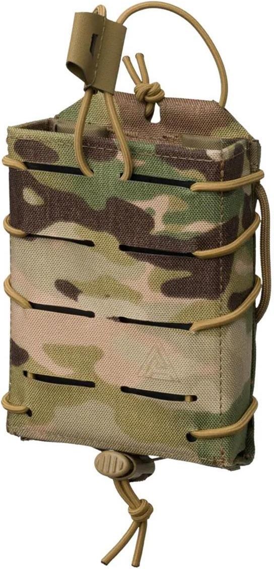Direct Action .308 Speed Reload Pouch – Ładownica otwarta – MultiCam Direct Action .308 Speed Reload Pouch to otwarta, szybka ładownica taktyczna, zaprojektowana z myślą o błyskawicznej wymianie magazynków do karabinów kalibru .308 / 7.62 mm. Kompaktowa, niskoprofilowa konstrukcja, połączenie wytrzymałej Cordury® i nylonu, a także zastosowanie elementów z Hypalonu®, gwarantują niezawodność, stabilność oraz bezpieczeństwo użytkowania nawet w najbardziej wymagających warunkach operacyjnych. Wytrzymałość i odporność Korpus ładownicy wykonano z Cordury® 500D – materiału o wyjątkowej odporności na przetarcia, rozdarcia i zużycie – oraz z laminowanego nylonu, który wzmacnia konstrukcję i redukuje wagę. Dzięki zastosowaniu laserowego cięcia, wszystkie krawędzie są gładkie i precyzyjnie wykończone, co przekłada się na trwałość i nowoczesny wygląd. Całość została zaprojektowana z myślą o intensywnym użytkowaniu w terenie – od dynamicznych strzelań po działania taktyczne. Szybki dostęp do magazynków Otwarta konstrukcja Speed Reload umożliwia natychmiastowy chwyt i wymianę magazynka, co ma kluczowe znaczenie podczas dynamicznych sytuacji taktycznych. Usztywnione ścianki utrzymują stały kształt kieszeni, co pozwala na łatwe włożenie i wyjęcie magazynka jedną ręką, bez ryzyka zacięcia lub zakleszczenia. Bezpieczne przenoszenie amunicji Wnętrze ładownicy wyłożone jest łatą z Hypalonu® – materiału o wysokiej przyczepności i odporności na warunki atmosferyczne, który stabilizuje magazynek i zapobiega jego przesuwaniu. Dodatkowo, od góry zastosowano elastyczne zabezpieczenie z linki bungee cord, które można regulować lub całkowicie zdjąć, dostosowując sposób użytkowania do indywidualnych preferencji. Połączenie sztywnej konstrukcji z elastycznym systemem retencji zapewnia pewne trzymanie magazynka nawet podczas biegu, czołgania czy zmiany pozycji strzeleckiej. System montażowy MOLLE/PALS i opcja montażu na pasie Ładownica jest w pełni kompatybilna z systemem MOLLE/PALS, co pozwala na łatwe mocowanie jej do kamizelek taktycznych, pasów bojowych lub plecaków. Na froncie umieszczono laserowo wycięte otwory montażowe, umożliwiające dołączenie kolejnych kieszeni w konfiguracji „stacked pouch” – jedna na drugiej. Dodatkowo, dzięki szlufkom z paracordu, możliwy jest montaż na pasie o szerokości do 45 mm, co zwiększa uniwersalność i elastyczność użytkowania. Najważniejsze cechy; ✅ Przeznaczona do magazynków .308 / 7.62 mm ✅ Wykonana z Cordury® 500D i laminowanego nylonu ✅ Otwarta konstrukcja – szybki dostęp do magazynków ✅ Wewnętrzna łata z Hypalonu® – stabilizacja i ochrona magazynka ✅ Usztywniony korpus utrzymujący kształt ✅ Regulowany obwód dla różnych typów magazynków ✅ Elastyczne zabezpieczenie bungee cord ✅ Kompatybilność z systemem MOLLE/PALS ✅ Laserowo wycięty panel z przodu – możliwość montażu dodatkowych kieszeni ✅ Szlufki z paracordu – montaż na pasie do 45 mm Dane techniczne; Kolor: MultiCam Materiał: Cordura® 500D, laminowany nylon, Hypalon® Wymiary: 8,5 × 3 × 11,5 cm Waga: 96 g