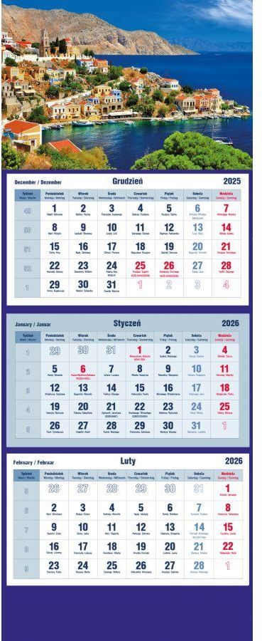 Kalendarz 2024 trójdzielny Santorini MICHALCZYK i PROKOP kalendarze __________________________________________________________________ format: 288 x 622 mm układ kalendarium: 3 miesiące – 1 kartka ilość stron: 12 kartek druk: 2 kolory rodzaj papieru: offset 80g/m2 biały główka pełnokolorowa, …