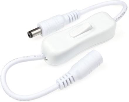 Włącznik do Led kołyskowy WL001 w kolorze białym Biały włącznik WL001 ręczny kołyskowy do włączania taśm Led, modułów Led na 12V i 24V. Włącznik do ręcznego włączania i wyłączania taśm Led, listew meblowych Led, modułów Led itp. Włącznik Led WL001 wyposażony w gniazdo i wtyk DC 2.1/5.5 do podłączenia włącznika do zasilacza i do taśm Led. Podstawowe zastosowanie włącznika Led: włączanie pasków Led na 12V i na 24V, ściemnianie taśm na 12V i na 24V, włącznik do oświetlenia Led meblowego, włącznik ze ściemniaczem do oświetlenia szafkowego Led. Podstawowe parametry włącznika Led: moc znamionowa: 5A maksymalne obciążenie Watt dla 12V: 48W, maksymalne obciążenie Watt dla 24V: 77W, napięcie zasilania: DC12V lub DC24V, tryb ściemniania: brak, zastosowanie: taśmy Led jednobarwne, moduły Led, żarówki Led, złącze wejściowe od zasilacza: DC 2.1/5.5, złącze wyjściowe na taśmę Led: DC 2.1/5.5, wymiary włącznika (dł. x szer. x wys.): 55mm x 20mm x 20mm, długość przewodów wejściowych od zasilacza (mm): 160mm, długość przewodów wyjściowych na Led (mm): 160mm