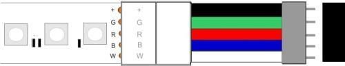 Złączka do kolorowej taśmy LED RGBW SMD z podkładem PCB 10mm, z wtykiem 5 pin do sterownika RGBW. Model RGBW T-P-K 10mm jednostronna z przewodem zakończona wtykiem 5-pin do podłączenia taśmy Led RGBW do sterownika. Używając złączki Led RGBW T-P-K możesz podłączyć kolorową taśmę Led RGBW do sterownika wyposażonego w wejście gniazdo 5-pin. Złączka służy do zapinania na taśmach Led RGBW pięcio-pinowych o szerokości podkładu PCB 10mm. Złączka LED jednostronna z przewodem czterożyłowym 5x0,25mm² o długości około 14 cm Zamiast stosowania złączek ze względu na lepszą trwałość połączeń, oraz lepsze i stabilne przejście napięcia zalecamy lutowania bezpośrednio przewodów do taśmy, lub łączenia ze sobą odcinków za pomocą bezpośrednich lutowań. Uwaga złączka nie pasuje rozstawem pinów do taśm LED COB RGBW.