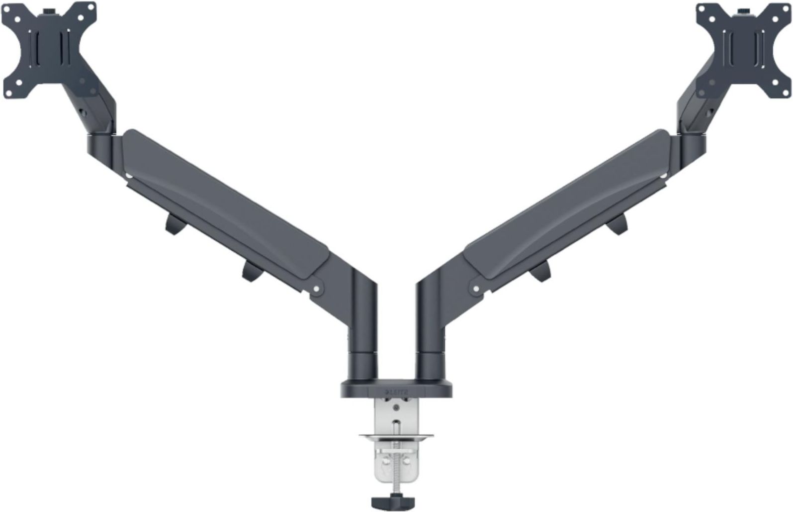 Oszczędzające miejsce na biurku ramię Leitz Ergo na dwa monitory Oszczędzające miejsce ramię Leitz Ergo do dwóch monitorów umożliwiają ustawienie ekranów na zgodnej z zasadami ergonomii wysokości, przyczyniając się do zachowania prawidłowej postawy, komfortowego ułożenia szyi i ramion oraz utrzymywania oczu na linii ekranu. Ramię z monitorem pozostaje stabilne na każdej wysokości i pod każdym kątem, umożliwia ponadto obrócenie ekranu z położenia poziomego na pionowe. Konstrukcja uchwytu idealnie sprawdza się w miejscach, gdzie przestrzeń na biurku jest ograniczona - unosząc monitor ponad blat biurka zwalniamy cenne miejsce na biurku. Ergonomicznie zaprojektowany uchwyt przyczynia się do zwiększenia produktywności i poprawy samopoczucia. Ergonomiczny uchwyt do montażu dwóch monitorów umożliwia ustawienie monitorów na odpowiedniej wysokości, przyczyniając się do zachowania prawidłowej postawy, utrzymywania oczu na linii ekranu i wygodnego ułożenia szyi i ramion Oszczędzająca miejsce konstrukcja umożliwia montaż w miejscach z ograniczoną przestrzenią, zapewniając jednocześnie maksymalną głębię ostrości i optymalną ergonomię wizualną Ustawienie monitorów można regulować całkowicie niezależnie od siebie, a krótsze ramię nośne umożliwia bezproblemowe ustawienie ekranów o różnych rozmiarach Dwa ramiona z wbudowaną sprężyną gazową ułatwiają regulację wysokości monitorów (185 mm-435 mm) Umożliwiają obrót monitorów o 180°, pochylenie w zakresie +90°/- 90° oraz regulację w górę, w dół, do przodu i do tyłu Mocna i stabilna konstrukcja pozwala na montaż dwóch płaskich lub dwóch zakrzywionych monitorów o przekątnej ekranu w zakresie 17"-32" i wadze do 9 kg (19,8 funta) każdy Łatwy i szybki montaż i demontaż przy pomocy znajdującej się w zestawie dołączanej płytki Vesa® (75 i 100 mm) i pokrytego kauczukiem silikonowym zacisku typu C, który redukuje wibracje i chroni powierzchnię biurka lub przez otwór przelotowy (zakres grubości biurka: 10-80 mm). Sprzedawane w komplecie z narzędziami do montażu i regulacji System do zarządzania kablami pozwala uporządkować kable, zapewniając porządek w miejscu pracy Posiada certyfikat IGR i TÜV