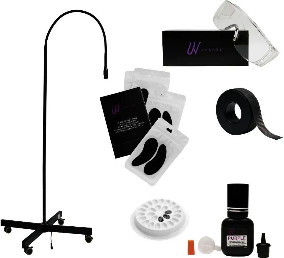 Noble Lashes Zestaw Startowy Do Przedłużania Rzęs Metodą UV – Z Czarną Lampą Zestaw startowy do przedłużania rzęs metodą UV to nowoczesne rozwiązanie w stylowym wydaniu, które wprowadza innowacyjność do świata stylizacji rzęs. Technologia światła UV zapewnia większą kontrolę, trwałość oraz bezpieczeństwo, co czyni ją przełomem w tej dziedzinie. Dla tych, którzy pragną rozpocząć przygodę z tą zaawansowaną metodą, profesjonalny zestaw startowy UV Lashes z czarną lampą stanowi idealny wybór. Zawiera wszystkie niezbędne elementy, aby bezpiecznie i komfortowo pracować metodą UV, niezależnie od poziomu zaawansowania użytkownika. Cechy Produktu 💡 Ekspresowe utwardzanie: Klej utwardza się w 1–2 sekundy pod lampą UV. 👁️ Bez oparów: Idealne dla klientek z wrażliwymi oczami. 🌡️ Odporność na warunki: Brak wpływu wilgotności i temperatury na jakość aplikacji. ⏳ Długotrwały efekt: Trwałość stylizacji nawet do 60 dni. 🛠️ Kompleksowy zestaw: Wszystko, co potrzebne do pracy metodą UV w jednym pakiecie. Zastosowanie Produktu Zestaw idealnie nadaje się zarówno dla początkujących, jak i doświadczonych stylistów, którzy chcą rozszerzyć swoją ofertę o nowoczesną technologię UV. Może być używany w salonach kosmetycznych, jak i do użytku domowego, zapewniając profesjonalne efekty. Najważniejsze Składniki Czarna lampa UV: Nowoczesny design i ergonomiczny kształt dla szybkiego utwardzania. Klej UV fioletowy: Bez TPO i hydrochinonu, szybkoschnący z doskonałą retencją. Płatki UV pod oczy: Delikatne i nie odbijające światła UV. Taśma UV: Idealna do pracy w strefie oczu przy lampie UV. Okulary ochronne UV: Zapewniają bezpieczeństwo stylistce i klientce. Matowa podstawka samoprzylepna na klej: Zapobiega przedwczesnemu utwardzaniu. Dlaczego warto wybrać ten zestaw? Wybierając ten zestaw, otrzymujesz kompletne wyposażenie do pracy metodą UV, co eliminuje potrzebę dokupowania dodatkowych akcesoriów. Dodatkowo, zakup w pakiecie jest bardziej opłacalny niż kupowanie elementów oddzielnie. Technologia UV zapewnia szybką aplikację, pracę bez oparów i większy komfort dla klientek, co przekłada się na oszczędność czasu i energii. Specyfikacja Techniczna Element Opis Czarna lampa UV Nowoczesny design, ergonomiczny kształt, szybkie utwardzanie Klej UV fioletowy Bez TPO i hydrochinonu, szybkoschnący, z doskonałą retencją Płatki UV pod oczy Delikatne, nie odbijają światła UV Taśma UV Idealna do pracy w strefie oczu przy lampie UV Okulary ochronne UV Zapewniają bezpieczeństwo stylistce i klientce Matowa podstawka samoprzylepna na klej Zapobiega przedwczesnemu utwardzaniu