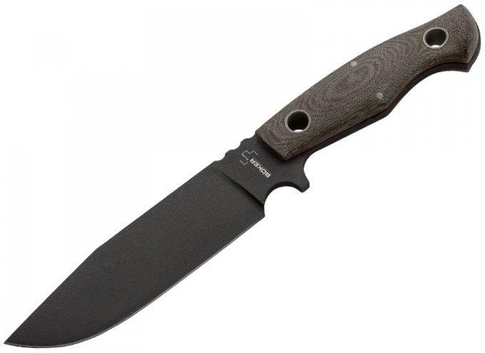 Boker Plus Rold SK-5 Nóż z Głownią Stałą 02BO293 Opis Boker Plus Rold SK-5, zaprojektowany przez Jespera Voxnæsa, to niezwykle wytrzymały nóż outdoorowy i obozowy. Konstrukcja full tang z ostrzem wykonanym z wytrzymałej stali węglowej SK-5 zapewnia doskonałą stabilność i wytrzymałość, idealną do wymagających zadań. Ostrze pokryte powłoką proszkową oferuje wyjątkową ochronę przed korozją, a pełny szlif płaski gwarantuje doskonałe właściwości tnące. Rękojeść z zielonej Micarty płóciennej zapewnia pewny chwyt, a duże otwory na nity w rękojeści zmniejszają wagę i umożliwiają zamocowanie smyczy. Dodatkowy rowek na palce zapewnia wiele opcji chwytu, co zwiększa wszechstronność użytkowania. Rowkowany grzbiet ostrza oraz lekko poszerzona końcówka rękojeści zwiększają bezpieczeństwo podczas pracy przy cięższych zadaniach. Czerwone przekładki pod rękojeścią dodają atrakcyjności wizualnej. Do noża dołączona jest pochwa z nylonu z zabezpieczeniem przed przebiciem, co czyni go niezawodnym towarzyszem w każdych warunkach. Parametry Długość całkowita: 28,00 cm Długość ostrza: 15,70 cm Grubość ostrza: 5,00 mm Waga: 293 g Materiał ostrza: SK-5 Materiał rękojeści: Micarta Materiał pochwy: Nylon Kolor rękojeści: Zielony Kolor ostrza: Czarny Numer produktu: 02BO293