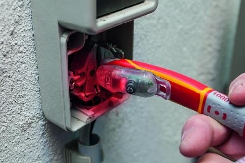 E-DETEKTOR 90-1000V Bezkontaktowy tester napicia to niewielki i porczny "pomocnik" do szybkiego sprawdzania wystpowania napicia. Uycie nie moe by prostsze: naley zbliy urzdzenie do kabla - jeeli napicie wystpuje zapali si czerwone, ostrzegawcze wiateko. Urzdzenie jest kompatybilne ze wszystkimi szczypcami FELO linii 3K oraz VDE. Przed uyciem naley skorzysta z przycisku. Na zdjciu pokazano zastosowanie, cena dotyczy samego detektora