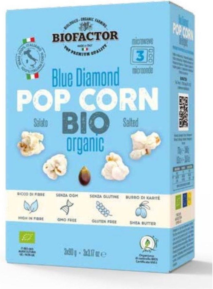 Popcorn niebieski z solą - do mikrofali - bezglutenowy Biofactor 3 x 90 g Jelcz-Laskowice