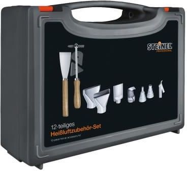 Zestaw akcesoriów 12 elementów w walizceDysze system Ø 34 mm, pasują do opalarek: HL1920 E HL2020 E HG2120 E HG2220 E HG2320 E MH3 MH5 W skład zestawu wchodzą:• dysza szerokostrumieniowa 75 mm, ST070212 • dysza okienna 75 mm, ST070410 • dysza reflektorowa, ST070519 • dysza redukcyjna 9 mm, ST070618 …