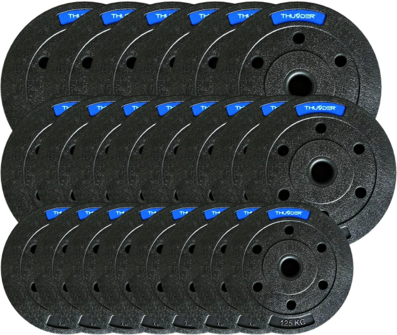 Zestaw treningowy SET-B-08-60KG marki ⚡THUNDER®️⚡- profesjonalny sprzęt do ćwiczeń ✅PARAMETRY OBCIĄŻENIA: ➡️Waga: 60 kg ✅Zestaw obciążeń zawiera: ➡️ 6x5 kg ➡️Średnica otworu: 31 mm ➡️ 8x2,5 kg ➡️Średnica otworu: 31 mm ➡️ 8x1,25 kg ➡️Średnica otworu: 31 mm ✅SOLIDNE WYKONANIE ➡️Obciążenie wykonane jest z kompozytu cementu i piachu. Z zewnątrz powleczone jest warstwą ochronną z tworzywa sztucznego pełniącą rolę wygłuszającą oraz amortyzującą. ➡️Talerze kompozytowe posiadają tłoczone oznaczenia wagi. Pasują do większości gryfów dostępnych na rynku. ✅ ZALETY: ➡️Idealny do treningu siłowego w zaciszu domowym. ➡️Ciężary kompozytowe zapewniają duży komfort treningu, głównie dzięki grubej warstwie wygłuszającej. ➡️Logowania w kolorze niebieskim dodają talerzom unikalnego charakteru.