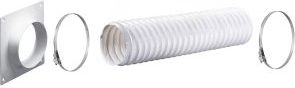 Zestaw wentylacyjny do samodzielneego podłączenia okapu kuchennego o średnicy fi. 100 mm/ 125 mm. W skład zestawu wcjhodzi kołnierz przyścienny z krućcem, 2x opaska zaciskowa metalowa oraz kanał elastyczny pvc nieizolowany o długości 1mb. Zestaw jest dostosowany do standardowego rozwiązania przy podłączeniu okapów kuchennych.
