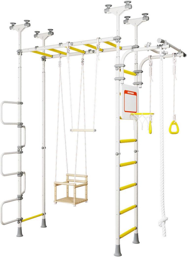 Drabinka gimnastyczna Pegas 2 Drabinka gimnastyczna Pegas 2 to istny plac zabaw i park rozrywki dla dzieci oraz dorosłych! Tak rozbudowany zestaw daje nieograniczoną liczbę możliwości na tworzenie kreatywnych zabaw oraz aktywności fizycznych. ELEMENTY ZESTAWU metalowa drabinka gimnastyczna drabinka pozioma drążek przesuwny drabinka wężołaz lina gimnastyczna huśtawka dziecięca kółka gimnastyczne kosz do koszykówki trapez gimnastyczny WAZNE Zestaw przeznaczony dla dzieci od 3 lat i dorosłych Dopuszczalne obciążenie drabinki i drążka: 100 kg Dopuszczalne obciążenie akcesoriów: 50 kg Szerokość zestawu: 86 cm Wysokość zestawu: 231,5 cm - 273 cm Montaż: rozporowo Zalecenia producenta: dzieci od 3 do 7 lat powinny ćwiczyć tylko pod nadzorem rodziców
