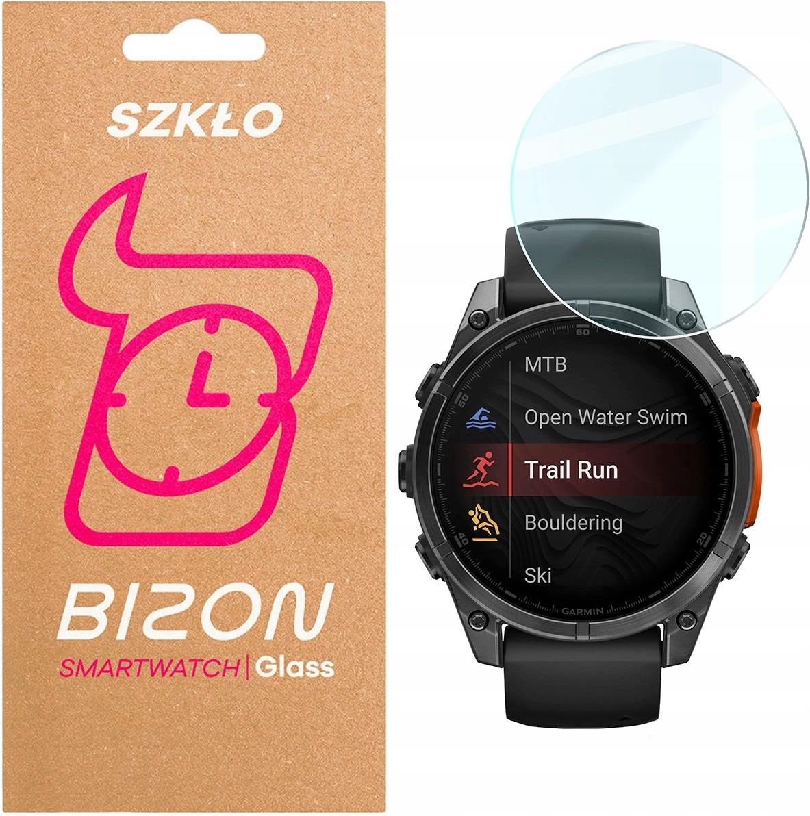 Szkło Bizon Glass Watch Clear Do Garmin Tactix 8 AMOLED 47 mm Twardość: 9H Niezawodnie zabezpiecza przed zarysowaniami Idealna przejrzystość Czystość dzięki powłoce oleofobowej Płynność działania wyświetlacza Szkło kompatybilne z większością etui Kod producenta: BGWCGART8AM47 Kod produktu: 5900415706298 Szkło hartowane do smartwatcha Przemierzasz biurowe szlaki i miejską dżunglę ze smartwatchem na nadgarstku? Jeżeli tak, na pewno wiesz, jak łatwo można uszkodzić ekran zegarka — wystarczy jeden zbyt zamaszysty ruch ręką podczas tłumaczenia szefowi, dlaczego zadanie nie zostało wykonane w terminie i trzask! Szkło hartowane na zegarek od marki Bizon z serii Clear to idealna ochrona dla wyświetlacza Twojego zegarka! Zapewnia wysokiej jakości zabezpieczenie przed zarysowaniami, utrzymując przy tym płynność i przejrzystość w działaniu. Wymiary szkła Dla jeszcze lepszej ochrony urządzenia zaleca się używanie szkła wraz z pokrowcem. Przed założeniem etui należy upewnić się, że szkło będzie z nim kompatybilne: wymiary szkła muszą być mniejsze od wymiarów wewnętrznych pokrowca futerał nie może nachodzić na szkło Wymiary szkła: 4,09 cm (średnica) Szkło pokrywa płaską część ekranu i w zależności od zaokrągleń danego modelu zegarka bardziej lub mniej nachodzi na ramki. Bezpieczeństwo i perfekcyjna czystość Bizon Glass Watch Clear łączy w sobie solidną konstrukcję i twardość 9H z pełną responsywnością dotyku. Nie przeszkadza to w zachowaniu wysokiej przejrzystości szkła, gwarantując, że nawet drobne detale pozostaną wyraźne. Szkło mieści w sobie niezawodną powłokę oleofobową, która minimalizuje widoczność smug i odcisków palców, pozostawiając ekran w idealnej czystości. Aplikacja szkła Aplikacja szkła nie sprawi Ci większych problemów, ponieważ proces jest prosty i szybki: Postaraj się, aby Twoje stanowisko było odpowiednio naświetlone oraz było wolne od kurzu i resztek jedzenia. Sprawdź, czy szkło na pewno pasuje do Twojego modelu smartwatcha. Za pomocą najpierw mokrej, a potem suchej ściereczki, oczyść powierzchnię wyświetlacza. Ewentualne pyłki usuń za pomocą Dust Absorbera lub naklejek pozycjonujących. Odklej środkową warstwę ochronną ze szkła. Przyłóż szkło do ekranu i delikatnie dociśnij, aby rozprowadzić klej. Wypchnij pęcherzyki powietrza, przesuwając je ściereczką z mikrofibry w kierunku najbliższej krawędzi. Jeśli pod szkłem znalazła się drobinka kurzu, możesz podważyć szkło i pozbyć się jej za pomocą Dust Absorbera lub naklejek pozycjonujących. Bez obaw! Po instalacji szkła wokół ekranu może pojawić się aureola powietrzna. Efekt nie jest spowodowany wadami fabrycznymi, a jedynie naturalnym procesem mogącym się pojawić w zależności od zakrzywień w danym modelu smartwatcha. Zawartość zestawu w odsłonie eko Wraz ze szkłem Bizon Glass Watch Clear opakowanie zawiera:: 1 suchą ściereczkę z mikrofibry, 1 mokrą ściereczkę, 3 naklejki pozycjonujące, Dust Absorbera. Bizon dba o środowisko, dlatego zestaw przybędzie do Ciebie w ekologicznym opakowaniu, w którym zastosowano jedynie śladowe ilości plastiku!