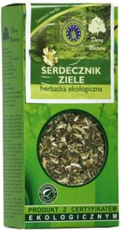 DARY NATURY - SERDECZNIK ZIELE EKO 50G Według literatury zielarskiej ziele serdecznika może działać lekko uspokajająco na układ nerwowy, wspomóc regulację pracy serca i obniża ciśnienie krwi. Roślina ta znana była i ceniona już w starożytnej medycynie chińskiej. Powszechnie uprawiano ją w Europie środkowej i zachodniej już od średniowiecza. Stosowana była jako łagodny środek uspakajający oraz regulujący pracę serca, zbliżony działaniem do kozłka lekarskiego (waleriany). Sposób użycia: Jedną łyżeczkę zalać szklanką wrzątku i pozostawić pod przykryciem do zaparzenia na około 10-15 minut. Składniki: ziele serdecznika* 100% *produkt rolnictwa ekologicznego Opakowanie: 50g