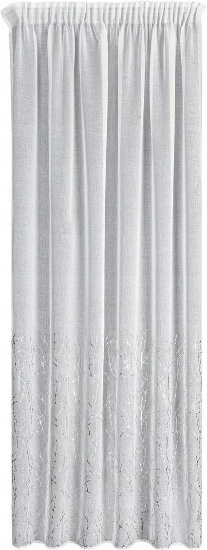 Firana Mella 140×270 cm biało-srebrna na taśmie – subtelna elegancja do każdego wnętrza Firana gotowa Mella w rozmiarze 140×270 cm to doskonały wybór dla osób poszukujących połączenia prostoty i elegancji. Delikatna tkanina w kolorze białym, subtelnie zdobiona srebrnym połyskiem, nadaje pomieszczeniu lekkości, a zarazem tworzy efektowną dekorację okna. Dzięki klasycznemu krojowi i uniwersalnej kolorystyce, sprawdzi się zarówno w nowoczesnych, jak i bardziej klasycznych aranżacjach. Firana została wyposażona w taśmę marszczącą, która ułatwia montaż oraz precyzyjne ułożenie tkaniny. Ten sposób mocowania sprawia, że materiał układa się w równomierne fale, co dodaje całej aranżacji eleganckiego charakteru. Wysokiej jakości poliester o gramaturze 70 g/m² gwarantuje trwałość i wygodę w użytkowaniu. Materiał jest lekki, a jednocześnie odporny na odkształcenia. Przepuszcza naturalne światło, jednocześnie zapewniając odrobinę prywatności – idealnie sprawdzi się w salonie, sypialni czy jadalni. Kluczowe cechy produktu: wymiary: szerokość 140 cm, długość 270 cm kolor: biały z subtelnym srebrnym połyskiem materiał: 100% poliester o gramaturze 70 g/m² sposób mocowania: taśma marszcząca gotowa do zawieszenia, nie wymaga dodatkowej obróbki pasuje do wnętrz nowoczesnych i klasycznych Najważniejsze zalety: gotowy produkt – nie musisz niczego skracać ani przerabiać taśma marszcząca pozwala łatwo dopasować firanę do szerokości karnisza subtelny połysk dodaje wnętrzu lekkości i elegancji lekki materiał przepuszcza światło, tworząc przyjemny klimat łatwa w utrzymaniu czystości – nadaje się do prania w pralce uniwersalna kolorystyka pasuje do wielu stylów wnętrzarskich Firana Mella doskonale sprawdzi się w pomieszczeniach, w których zależy Ci na optycznym rozjaśnieniu przestrzeni i dodaniu dekoracyjnego akcentu bez przesadnej dominacji. To produkt, który łączy praktyczność z estetyką, oferując jednocześnie łatwość montażu i efektowny wygląd. Jeśli chcesz w prosty sposób odmienić swoje wnętrze i nadać mu bardziej przytulnego, a zarazem eleganckiego charakteru – wybierz firanę Mella. Gotowa do zawieszenia od razu po wyjęciu z opakowania, pozwoli Ci cieszyć się natychmiastowym efektem bez zbędnych komplikacji. Zamów teraz i dodaj swojemu wnętrzu subtelny blask i wyjątkowy styl.