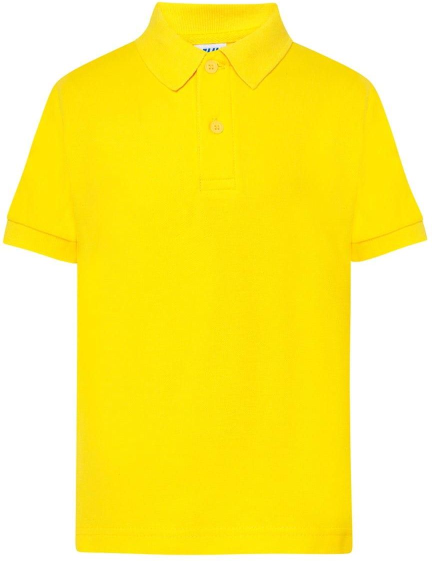 Koszulka Polo dziecięca żółta Wytrzymała koszulka polo wykonana z mieszanki poliestrowo-bawełnianej. Dzianina pique. Bardzo wygodna w użytkowaniu. Posiada dziany kołnierzyk i końce rękawków oraz zapięcie na guziki. Idealnie sprawdzi się na wszelakich uroczystościach szkolnych, komuniach, urodzinach …