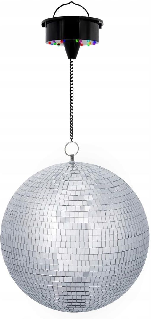 Kula lustrzana MusicMate MM-DB300 Spinglare Kula lustrzana o średnicy 40 cm z napędem obrotowym i efektem świetlnym RGB LED 18 diod LED i 2 tryby pracy: światło ciągłe oraz aktywacja dźwiękiem Zasilanie bateryjne: 3x AA (brak w zestawie) Sterowanie za pomocą panelu i pilota zdalnego sterowania W …