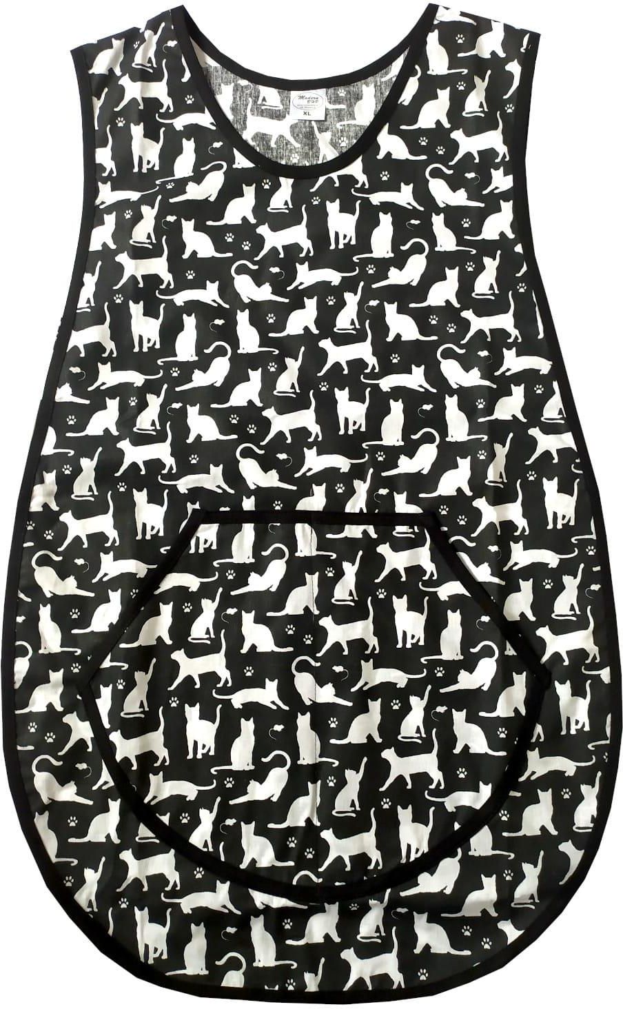 Fartuszek kuchenny z kieszenią wzór 02 białe kotki na czarnym tle Kto lubi gotować wie, jak pomocnym bywa kuchenny fartuszek. Nie zauważymy nawet jak coś nam pryśnie czy kapnie i ulubiona bluzka do prania. Uniwersalny fartuszek gastronomiczny damski przeznaczony do pracy w kuchni. Okrycie umożliwia zachowanie higieny podczas przygotowywania potraw oraz zachowanie w czystości odzieży wierzchniej. Fartuch wykonany został z bardzo trwałej tkaniny bawełnianej. Posiada praktyczną, bezpieczną kieszeń z przodu oraz regulowaną szerokość. Fartuszek kucharski znajdzie zastosowanie w domu, w szkolnych stołówkach, kołach gospodyń, dla branży cateringowej Charakterystyka fartuszka: *wzór: białe kotki na czarnym tle *czarna lamówka *wkładany przez głowę *z boku wiązany na troczki *materiał: bawełna 100% *bardzo trwała tkanina o skośnym splocie odporna na odbarwienia *gramatura: 190g/m2 *producent: M&C *duża praktyczna kieszeń z przodu przedzielona na pół