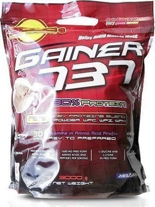 MEGABOL | Gainer 737 | 3000g | Truskawka | + GRATISY! MEGABOL Gainer 737 Opakowanie: 3000 g + Atlas Ćwiczeń (pdf) GRATIS! + LOSOWY SHAKER GAINER 737™ jest wynikiem wielomiesięcznych prac mających na celu zaprojektowanie produktu o pełnowartościowym aminogramie, w pełni przyswajalnego i optymalnie wykorzystywanego przez organizm sportowca a zarazem przystępnego cenowo. Z czym mogę stosować GAINER 737™? MAKSYMALNA MASA z kreatyną, HMB, odżywkami białkowymi, aminokwasami MAKSYMALNA SIŁA z kreatyną, aminokwasami BCAA, nitrobolonem, glutaminą Preparat klasy, 'gainer' podwyższona – 30% zawartość białka. Najbardziej aktualne opracowania dotyczące dietetyki sportowej zalecają taką właśnie ilość białka w preparatach białkowo-węglowodanowych. GAINER 737™ zawiera wszystko co najważniejsze: 30% białka pochodzącego z serwatki i izolowanej proteiny zarodków pszenicy (specjalistyczny dodatek odżywczy produkowany we Francji). Hydrolizat białka kolagenu zwierzęcego dostarcza form wolnych i peptydowych. Zestaw ten tworzy uniwersalny profil aminokwasowy o wysokiej wartości biologicznej. Taki skład aminogramu zapewnia dostęp do aminokwasów ilościowo i strukturalnie dopasowanych do zapotrzebowania zmienionego w wyniku treningu fizycznego. Optymalnie dobrany kompleks węglowodanów prostych i złożonych ma na celu jak najdłuższe oddziaływanie energetyczne na organizm. Węglowodany proste - szybkowchłanialne zapewniają energię bezpośrednio po spożyciu, natomiast złożone - wolnowchłanialne, długotrwale uwalnianiają składniki energetyczne. Wysoka zawartość glutaminy (30g kwasu glutaminowego/100g białka). Glutamina jest podstawowym aminokwasem ustrojowym. Jest transporterem azotu w przewodzie pokarmowym oraz prekursorem ważnych czynników metabolicznych (arginina, glutation, tauryna). Przyspiesza regenerację tkanki mięśniowej. Pełen zestaw witamin (E, C, B1, B2, PP, B6, B12, folacyna, biotyna, kwas pantotenowy) zapewnia uzupełnienie ich braków, do których często dochodzi przy systematycznych, intensywnych treningach. Aminokwasy w formie wolnej i peptydowej. Aminokwasy w takiej formie znane są wszystkim kulturystom jako popularny suplement. Dodanie aminokasów do odżywki wpływa na skrócenie czasu ich dostępności (przed uzyskiwaniem ich w długotrwałym procesie trawienia białek). Oprócz podstawowej funkcji budulcowej pełnią funkcję ochronną jako składnik regulatorów metabolicznych- enzymów i białek funkcjonalnych (transportowe, odpornościowe, receptory). Dawkowanie: 1 porcję (70g - 4 czubate łyżki stołowe) zmieszaj w zamkniętym naczyniu z 220ml wody lub mleka. Dla uzyskania najlepszego smaku można odczekać kilka minut po wymieszaniu preparatu. Większa ilość wody zubaża walory smakowe. Spożywać bezpośrednio po przygotowaniu, najlepiej jako dodatkowy posiłek między głównymi posiłkami i/lub w mniejszej porcji jako uzupełnienie przed mniejszym posiłkiem. Optymalną skuteczność osiąga się poprzez stosowanie 1-3 porcji dziennie. Skład w porcji (70g, %dz.) Wartość energetyczna: 254,1kcal Tłuszcz: 0,56g W tym nasycone kwasy tłuszczowe: 0,14g Węglowodany: 41,3g W tym cukry proste: 25,2g Białko: 21g Sól: 0,21g Hydrolizat aminokwasów: 1400mg L-leucyna: 70mg L-lizyna: 210mg Witamina B1: 0,49mg, 44,8% Witamina B2: 0,63mg, 44,8% Witamina B6: 0,56mg, 39,9% Witamina B12: 1,12mcg, 44,8% Niacyna: 6,16mg, 38,5% Foliany: 154mcg, 77% Witamina E: 4,62mg, 38,5% Witamina C: 33,6mg, 42% Biotyna: 21mcg: 42% Kwas pantotenowy: 4,2mg, 70% Skład (SMAK KRUCHEGO CIASTKA) Kompleks serwatkowy 737 (suszona serwatka, koncentrat białka serwatkowego, izolat białka serwatki, hydrolizat białka serwatki), białko zarodków pszenicy, maltodekstryna, kompleks peptydowo-aminokwasowy 737 (hydrolizat białka kolagenu, hydrolizat białka serwatki, L-leucyna, L-lizyna), aromaty, witaminy.