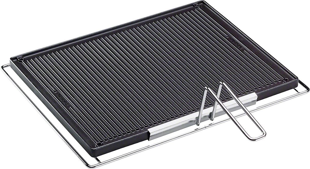 Płyta grillowa do grillowania i smażenia mięsa, ryb, warzyw i wielu innych. Perfekcyjnie dopasowane do płyty CombiSet Miele CS 1322 BG Do użytkowania obustronnie - strona gładka jak i żłobkowana Z żeliwa ze specjalną emalią W zestawie zdejmowany uchwyt dla prawo- i leworęcznych
