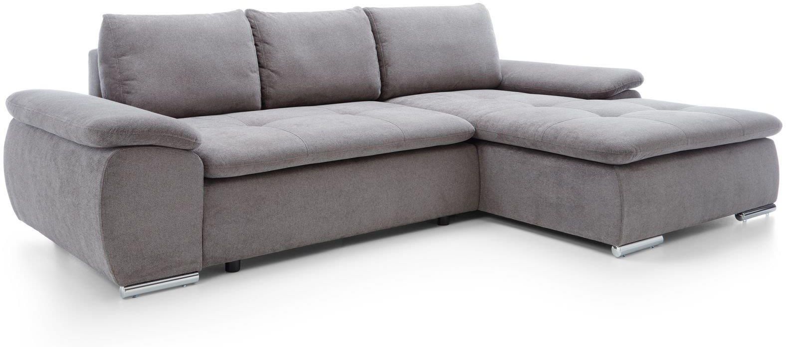 NAROŻNIK BREVIA BOSS 18 SZARY PRAWY to szykowny mebel wypoczynkowy do salonu, idealnie nadający się do stylu nowoczesnego. Komfort siedzenia zapewniają miękkie siedzisko oraz wygodne oparcie wykonane z weluru. Narożnik ma kształt litery L i wyposażony jest w funkcję spania o szerokości 139 cm oraz pojemnik, dzięki któremu można przechowywać pościel, koce i poduszki. Stelaż w kolorze chromu z szarym welurem tworzą stylowy mebel dopasowany do każdego pomieszczenia. Model przeznaczony jest dla 3 osób, jest stabilny, wytrzymały i trwały. NAROŻNIK BREVIA BOSS 18 SZARY PRAWY to połączenie funkcjonalności i stylu, oferujący komfort codziennego relaksu.