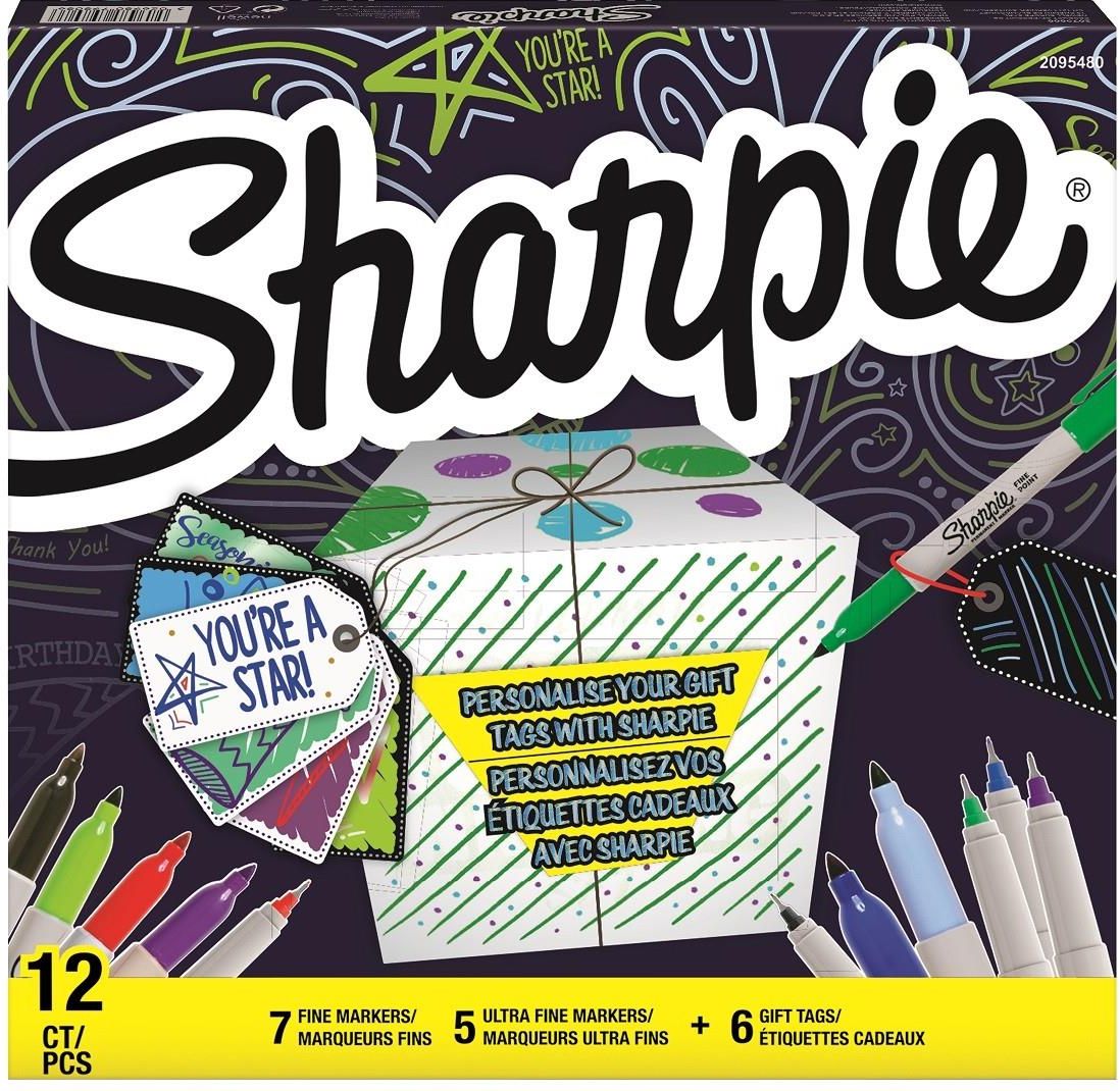 PROMARKERY SHARPIE 12 KOLORÓW 2079808 12 markerów Sharpie + zawieszki - 7 fine + 5 ultrafine, posiadają szarą obudowę ze skuwką w kolorze tuszu oraz zatyczkę z funkcjonalnym klipem. Szybko schnące. Cechy Zestaw 12 kolorów zapakowanych w wygodne pudełko Trwałe, nie blaknące kolory Wodoodporne i …