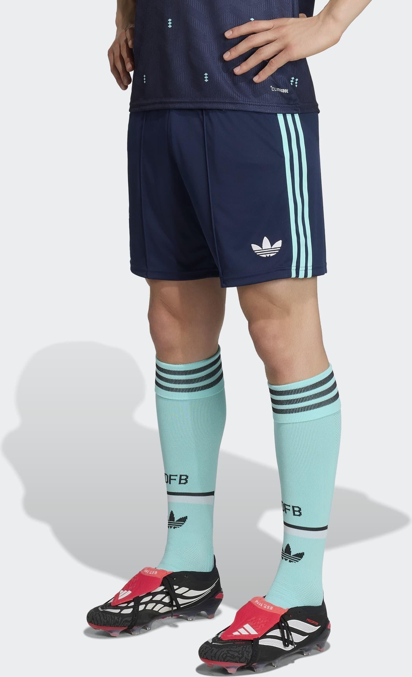 Spodenki wyjazdowe Niemcy 26 Marka:Adidas Opis produktu Lekkie spodenki w wyjazdowych kolorach, wyposażone w technologię Climacool zapewniającą uczucie chłodu i suchości. Cechy kluczowe Piłka nożna Odzież piłkarska Spodenki piłkarskie Specyfikacja Przeznaczenie:Piłka nożna Rozmiar: