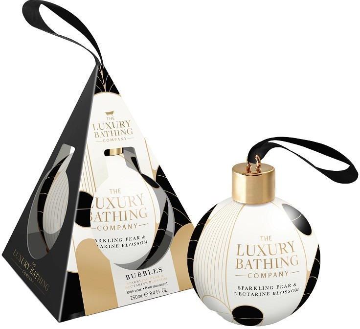 Luxury Bathing Sparkling Pear & Nectarine Blossom – Rytuał odprężenia, który przeniesie Cię wprost do świątecznej krainy!Wyobraź sobie, że zanurzasz się w puszystej, pachnącej pianie, która delikatnie muska Twoją skórę. Zmysłowy aromat soczystego grejpfruta, słodkiej gruszki, egzotycznej pomarańczy, delikatnych kwiatów, aksamitnego drzewa sandałowego i słodkiej wanilii otuli Cię niczym ciepły koc.Elegancki flakon w kształcie świątecznej ozdoby to nie tylko praktyczny produkt, ale także piękna d