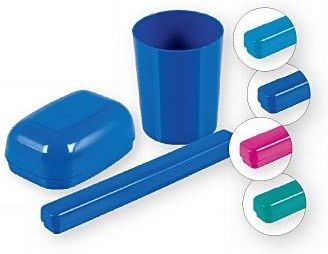 Top Choice komplet toaletowy 42058 1 op 3 szt to przydatny i funkcjonalny komplet toaletowy, w skład którego wchodzi pojemna mydelniczka, kubek do wody oraz etui na szczoteczkę do zębów. Akcesoria uporządkują kosmetyki przeznaczone do pielęgnacji zębów czy twarzy, dzięki czemu łatwo znajdziesz wszystkie potrzebne produkty. Zamykana mydelniczka oraz etui na szczoteczkę do zębów zabezpiecza akcesoria do codziennej pielęgnacji przed bakteriami i innymi zanieczyszczeniami. Produkty wykonane z wysokiej jakości plastiku posłużą przez długi okres czasu. Komplet toaletowy dostępny jest w 4 modnych kolorach: jasny niebieski, ciemny niebieski, różowy i zielony.