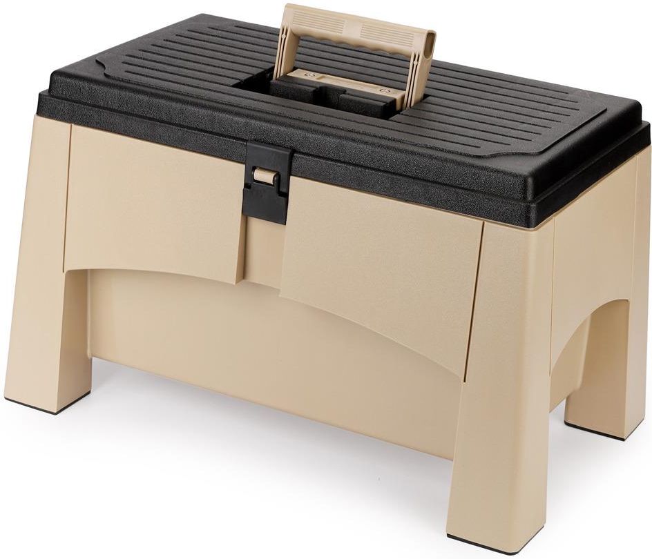 Taboret ze schowkiem Yolco ST2 Sand Funkcjonalność i wygoda w jednym – praktyczny schowek z siedziskiem Wytrzymała konstrukcja umożliwia wykorzystanie produktu jako stopnień lub siedzisko. Pojemny schowek z organizerem pozwala na przechowywanie narzędzi, zabawek lub innych drobiazgów. Tekstura wieka oraz antypoślizgowe stopki zapewniają stabilność podczas użytkowania. Niska waga oraz wbudowana rączka ułatwiają komfortowe przenoszenie. Dane techniczne Wymiary produktu (D x S x W): 560 x 340 x 340 (22.0 x 13.4 x 13.4 in)  Wymiary wewnętrzne schowka (D x S x W): 460 x 240 x 250 mm (18.1 x 9.4 x 9.8 in)  Pojemność schowka: 27.6 litra (6.1 gal)  Waga: 3.9 kg (8.6 lb)  Maksymalne obciążenie: 200 kg (440.9 lb)  Materiał: PP, nylon, LLDPE .Cechy3 .lnd_text { padding-left: 3%; padding-right: 3% } Sprawdź nowości .Cechy3 .lnd_text { padding-left: 3%; padding-right: 3% }