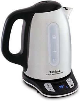 Tefal Express Control KI240D30  Precyzyjny dobór temperatury, odpowiednio do wszystkich rodzajów gorących napojów   Zalety Posiadając czajnik ze stali nierdzewnej Express Control, możesz cieszyć się gorącymi napojami jakimi chcesz i kiedy chcesz. Jego 7 ustawień temperatury oraz cyfrowy wyświetlacz uławia przygotowanie doskonałych aromatycznych naparów herbacianych, natomiast funkcja 60-minutowego utrzymania temperatury zapewnia gorące dolewki o dowolnej porze. Czajnik posiada ukryty element grzejny, który umożliwia szybkie zagotowanie wody i łatwe czyszczenie wnętrza dzbanka, natomiast jego pojemność 1,7 l jest idealna, gdy spędzasz miłe chwile w gronie rodziny i przyjaciół. Całości dopełniają obrotowa podstawa 360°, wyjmowany filtr antywapienny, wspomagane otwieranie pokrywy i dwa duże wskaźniki poziomu wody dla większej wygody.