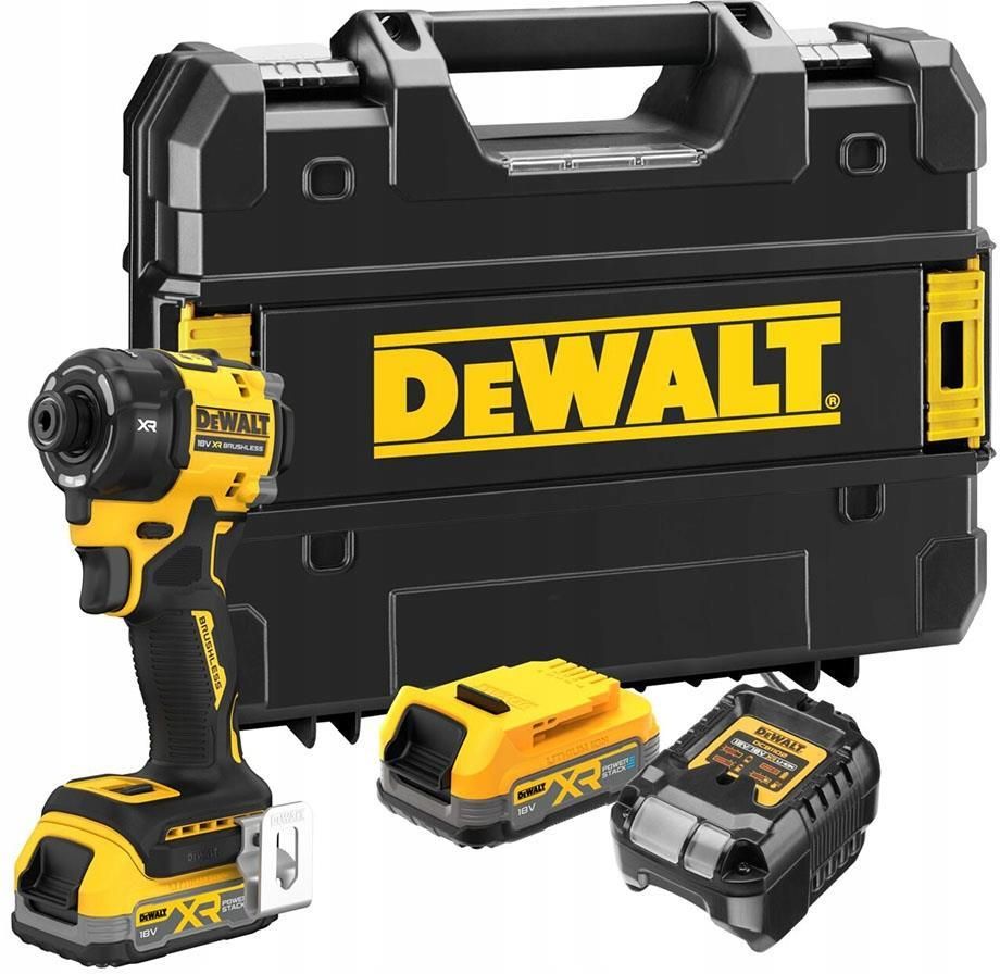 Zakrętarka udarowa olejowa 18V XR 2x1,7Ah BL 50Nm DeWALT DCF870E2T Zawartość zestawu Zakrętarka udarowa olejowa 18V XR 2x1,7Ah BL 50Nm DeWALT DCF870 Akumulator PowerStack 18 V 1,7 Ah 2 szt. Ładowarka XR 10,8 - 18V Hak do mocowania przy pasie Kufer TSTAK Dane techniczne DeWALT DCF870E2T Typ …