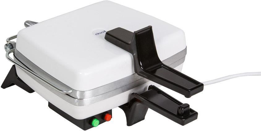 Gofrownica marki Dezal o mocy 1600 Wat. Czas pieczenia gofra to od 2,5 do 3 minut. Płyta gofrownicy została wykonana z aluminium, która jest pokryta greblonem zapobiegającym przywieraniu ciasta do podłoża.