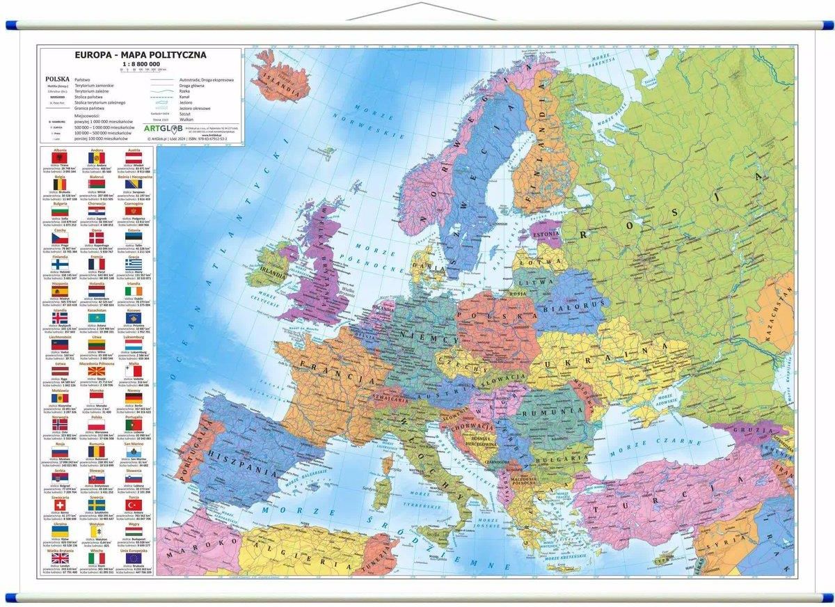 Europa. Mapa Ścienna Polityczna 1:8 800 000 Jeziorany