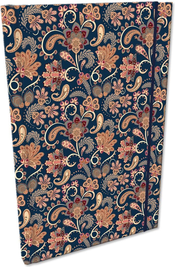Ev-Corp Elegancki Notes Notatnik A5 Z Gumką Soft Touch W Kratkę Paisley Kwiaty Blue Papier Chamois Jeziorany