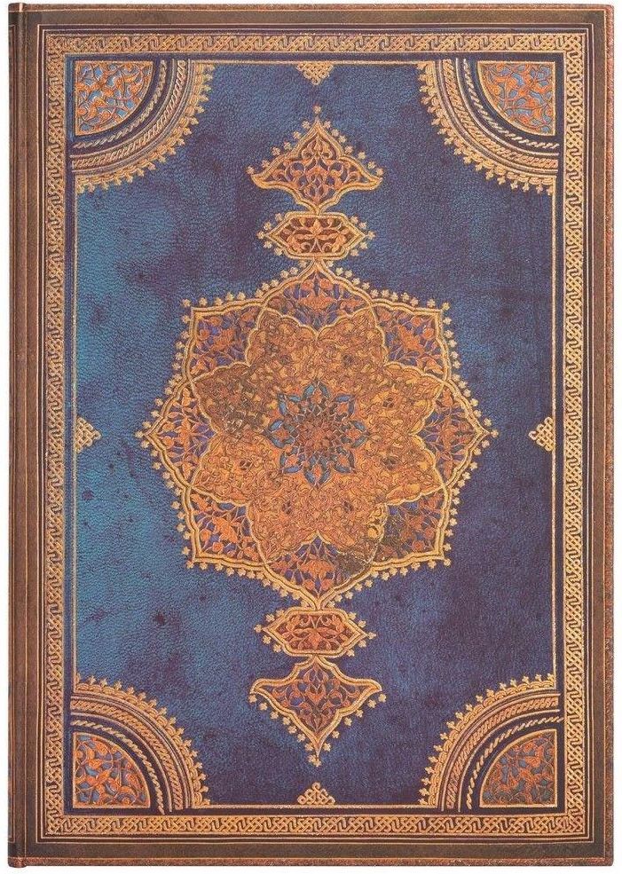Ekskluzywny notatnik/notes z kartkami gładkimi Paperblanks Safavid Indigo grande z serii Safavid Binding Art Cechy: 2 wstążkowe zakładki kieszonka zamknięcie na gumkę objętość: 128 str format: 210 x 300 mm oprawa twarda papier kremowy, bezkwasowy: 120 g/m2