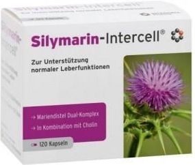 SUPLEMENT DIETY Silymarin-Intercell 120 kapsułek Ostropest plamisty w połączeniu z choliną dla wsparcia funkcji wątroby Preparat zawiera ekstrakt z owoców ostropestu plamistego: sylimarynę, której głównym składnikiem i najważniejszą biologicznie aktywną substancją jest sylibina. Dla …