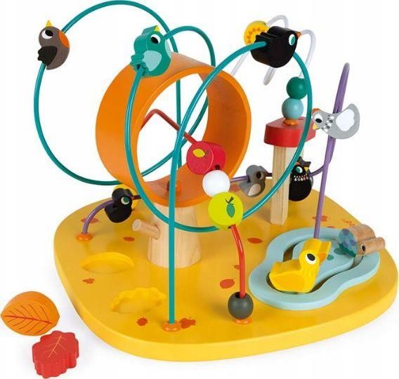 Pętla edukacyjna Kura i spółka, Janod J08255 Pętla edukacyjna Kura i spółka francuskiej marki JANOD to piękna pętla o bardzo przewiewnym kroju, z 4 nitkami i pięknymi koralikami w kształcie ptaków, kur i słońc, które można przesuwać po kurniku, z pewnością rozbawi dziecko. Aby dopełnić scenkę, w …