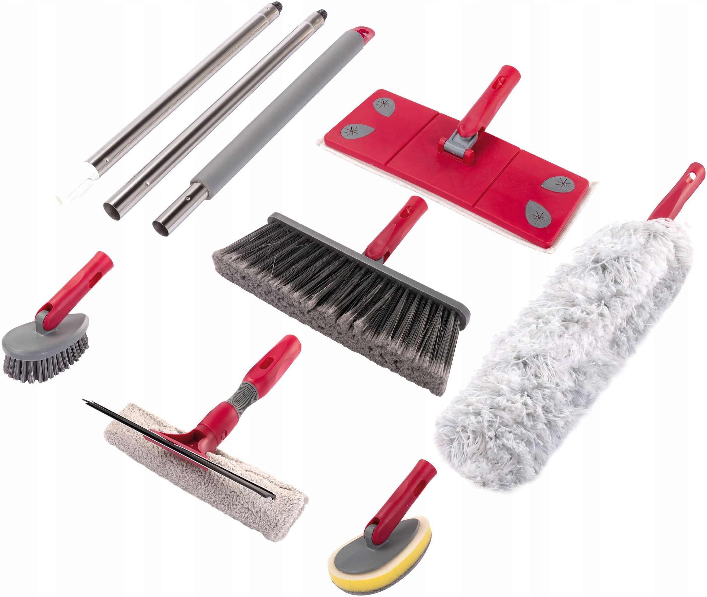 ZESTAW Czyszczący Wielofunkcyjny do Sprzątania 7 ELEMENTÓW Miotła Mop Szczotka Funkcjonalny i wielozadaniowy zestaw do sprzątania LT8070 marki Lamart, który ułatwia codzienne prace domowe i pozwala zaoszczędzić sporo miejsca. W skład zestawu wchodzą: miotła o wymiarach 26,2 x 4 cm i długości włosia 8 cm; mop o rozmiarach 27 x 10,5 cm; dwustronna ściągaczka do okien o szerokości 25,5 cm; gąbka do szorowania 11,6 x 6,8 cm; szczotka 11,6 x 6,8 cm z włosiem o długości 3 cm; miotełka z mikrofibry o długości 56 cm; oraz składany, trzyczęściowy drążek ze stali nierdzewnej o długości 110 cm, z miękkim uchwytem. Mop można używać zarówno z nakładką z mikrofibry, jak i z jednorazowymi materiałami włóknikowymi. Zestaw złożony z 7 części | Trzyczęściowy drążek ze stali nierdzewnej o długości 110 cm | Możliwość użycia mopa z nakładką z mikrofibry lub jednorazowymi materiałami włóknikowymi Parametry i funkcje Funkcjonalny i wielozadaniowy zestaw do sprzątania 7 szt. w zestawie Miotła o wymiarach 26,2 x 4 cm i długości włosia 8 cm Mop o wymiarach 27 x 10,5 cm Dwustronna ściągaczka do okien o szerokości 25,5 cm Gąbka do szorowania 11,6 x 6,8 cm Szczotka 11,6 x 6,8 cm z włosiem o długości 3 cm Miotełka z mikrofibry o długości 56 cm Składany, trzyczęściowy drążek ze stali nierdzewnej o długości 110 cm Kolor: czerwony Tworzywo: plastik, syntetyk Składany, trzyczęściowy drążek W zestawie LT870 Lamart znajduje się trzyczęściowy, jak również składany drążek. Jego łączna długość po złożeniu to aż 110 cm. Dzięki takiej jego długości możemy swobodnie sprzątać różne miejsca, wsuwając np. miotłę czy mopa pod meble, czy myjąc okna specjalną ściągaczką do szyb. Zamiatanie i mycie Z pomocą zestawu LT8070 można nie tylko pozamiatać dokładnie różne rodzaje podłóg, ale także je wymyć, co jest możliwe dzięki końcówce z długim włosiem oraz mopem. To nie tylko świetny sposób na sprzątanie, ale także oszczędność miejsca. Już nie będziemy potrzebowali równocześnie mopa i miotły. Ściągaczka do szyb Ściągaczka do szyb służy do skutecznego usuwania wody, mydlin i innych płynów z powierzchni szklanych, takich jak okna, lustra czy kabiny prysznicowe. Jej gumowa listwa precyzyjnie zbiera wilgoć, pozostawiając czyste, bezsmugowe powierzchnie. Dzięki temu narzędziu można szybko i efektywnie wyczyścić szyby, bez konieczności polerowania ich. Miotełka z mikrofibry Miotełka z mikrofibry posłuży do delikatnego i skutecznego usuwania kurzu oraz drobnych zanieczyszczeń z różnych powierzchni. Dzięki właściwościom materiału przyciąga i zatrzymuje kurz, nie rozpraszając go po pomieszczeniu. Jest idealna do czyszczenia mebli, elektroniki, półek, parapetów, a także trudno dostępnych miejsc, jak szczeliny i zakamarki. Skuteczne szorowanie powierzchni Znajdujące się w zestawie LT8070 marki Lamart gąbka i szczotka do szorowania sprawdzają się do intensywnego czyszczenia i usuwania uporczywych zabrudzeń z różnych powierzchni. Oba narzędzia ułatwią gruntowne sprzątanie i pomogą w pozbyciu się zanieczyszczeń, których zwykła szmatka nie jest w stanie usunąć.