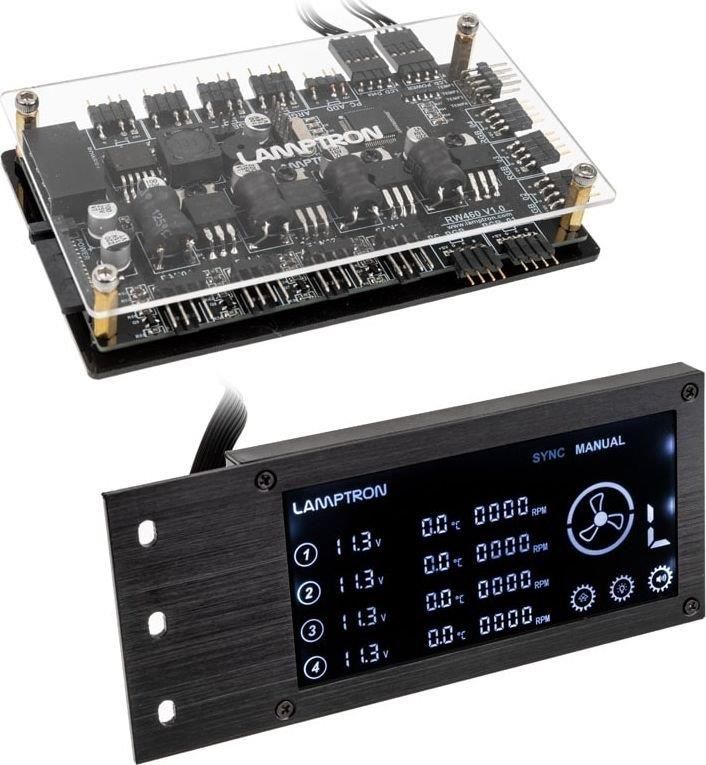 Sterownik Lamptron RW460 do chłodzenia cieczą, wentylatorów PWM, oświetlenia RGB i ARGB z wyświetlaczem, czarny Kontroler Lamptron RW460 oferuje niemal nieograniczoną kontrolę nad wentylatorami i oświetleniem RGB. Przy mocy do 36 watów na kanał nie ma prawie żadnych ograniczeń. Kontroler …