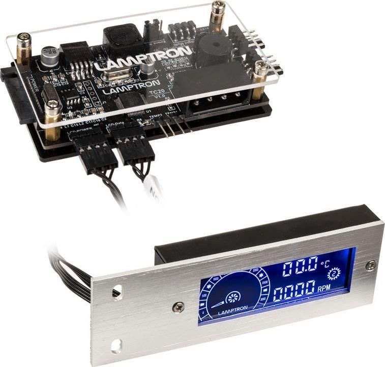 Lamptron TC20 kontroler wentylatorów PWM i oświetlenia RGB 12V 4-pin z wyświetlaczem PCI, srebrny Kontroler Lamptron TC20 PCI RGB i wyświetlacz wentylatora zapewniają szeroką kontrolę nad oświetleniem RGB z wentylatorów lub pasków. Na przykład oświetlenie RGB LED wentylatorów lub listew o mocy do …