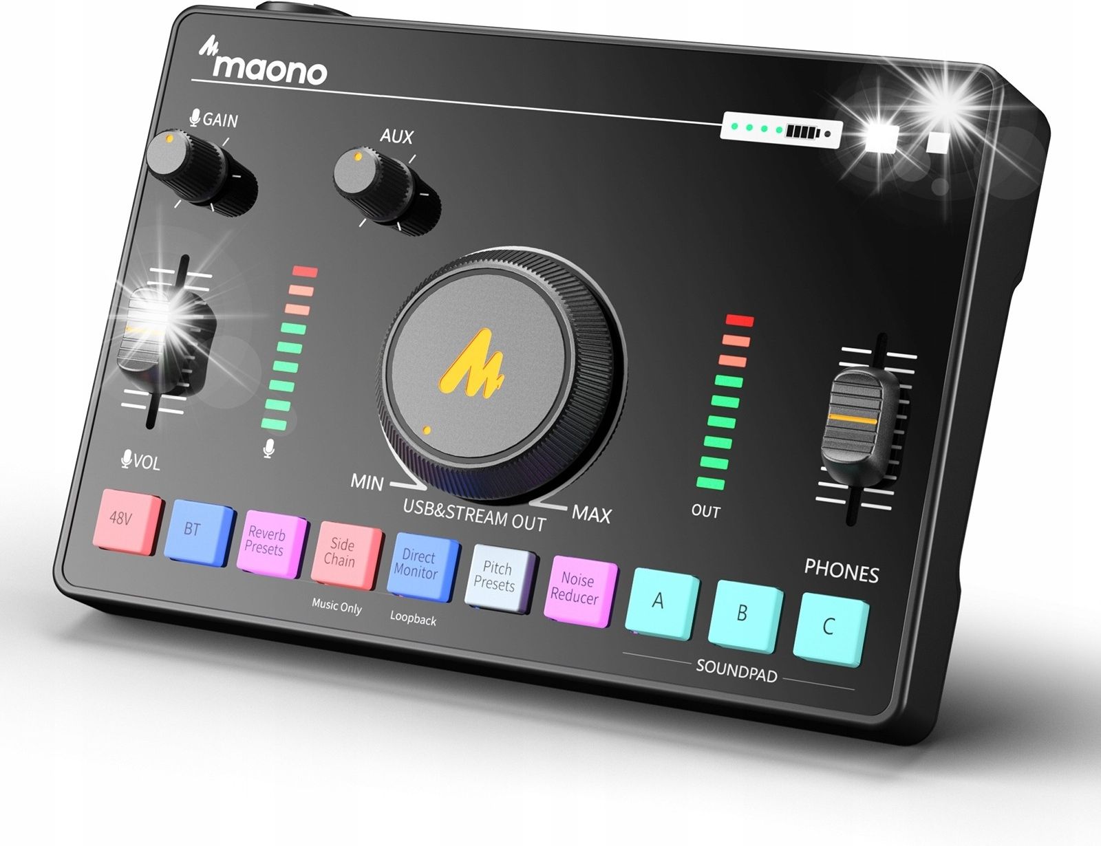 Specyfikacja techniczna Interfejs: XLR Złącza - in: XLR zbalansowany - 1 szt.; Jack 3,5 mm - 1szt.; USB-C - 1 szt. Złącza - out: Jack 3,5 mm - 1 szt. Wbudowany zasilacz Phantom: 48V Odsłuch w czasie rzeczywistym: Direct Monitoring Dodatkowe informacje: Redukcja szumów; Czas pracy na baterii: do 7 h; Wbudowana bateria 1500 mAh; Czas ładowania: 2,5 h; Bluetooth 4.2; Wbudowana karta dźwiękowa Akcesoria w zestawie: 3 x kabel TTRS 3,5 mm; Kabel USB Type-C - USB Type-A Kolor: Czarny Wysokość: 50 mm Szerokość: 185 mm Głębokość: 130 mm Waga: 360 g Kod produktu: MAONO AMC2 Neo Mikser Audio i Karta dźwiękowa | AMC2 Neo | [*(1240397)*] Galeria
