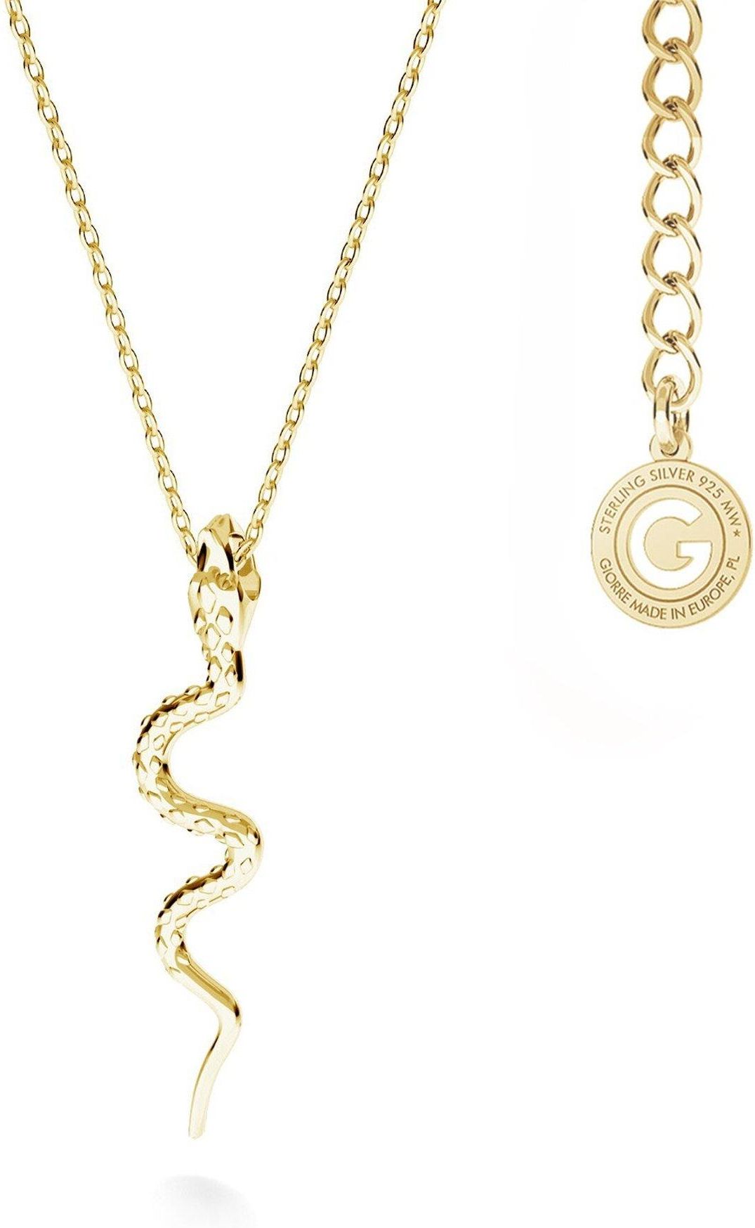 SREBRNY NASZYJNIK WĄŻ, SREBRO 925 SREBRO - KOLOR POKRYCIA: POKRYCIE ŻÓŁTYM 18K ZŁOTEM DŁUGOŚĆ (CM): 40 + 5 *Podana waga dla długości 40+5 cm Metal: Srebro próby 925 Wysokość: ~2,9 cm Szerokość: ~0,6 cm Typ splotu: ankier Grubość splotu: ~0,1 cm Waga: ~2,6 g* Każdy produkt marki GIORRE posiada 24 …