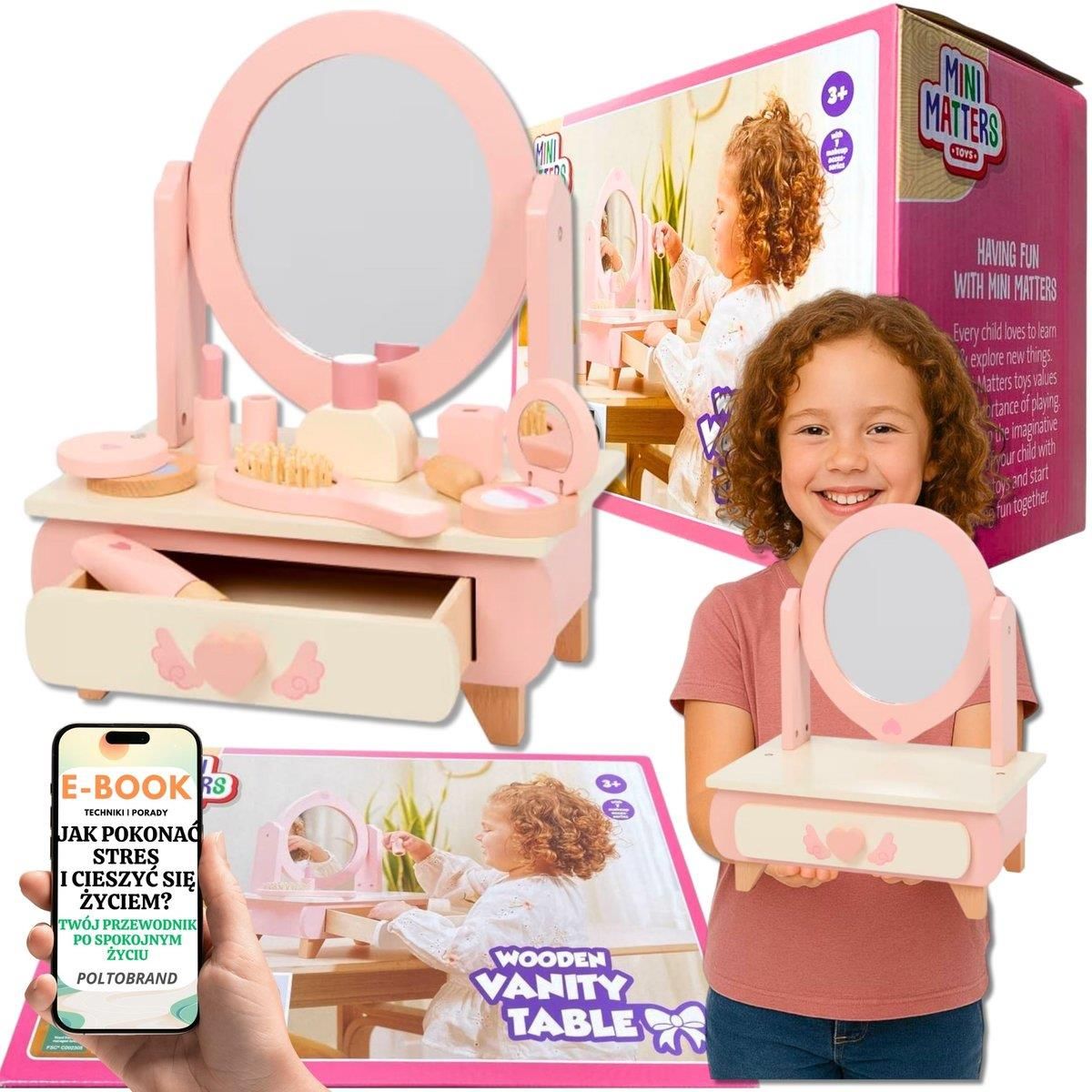 Pltb Toaletka Z Akcesoriami Dla Dziewczynki • Drewniana Bezpieczna Solidna Prezent Dziecka 4 5 6 7 Latki + Ebook-1 Jeziorany