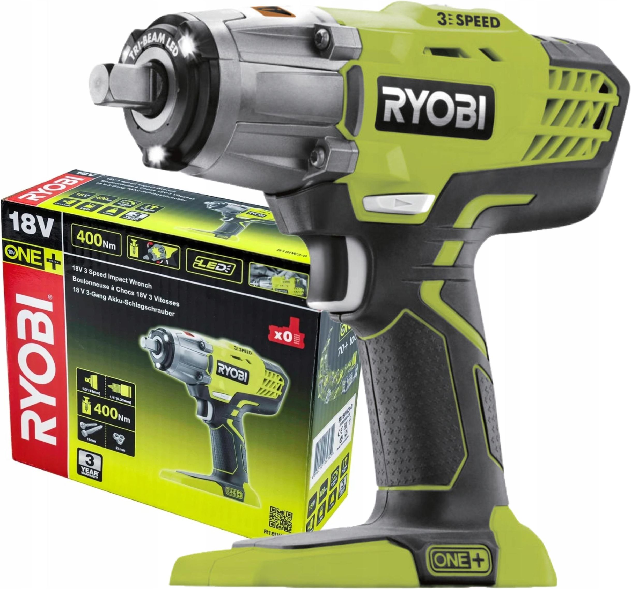KLUCZ UDAROWY 18V SOLO (BEZ AKUMULATORA I ŁADOWARKI) RYOBI R18IW3-0 Wysoki moment obrotowy 400 Nm zapewnia skuteczne wykonanie bardziej wymagających zadań związanych z przykręcaniem i odkręcaniem śrub Moment obrotowy przenoszony jest bez obciążenia użytkownika 3 ustawienia prędkości zapewniają większą elastyczność zastosowań i pełną kontrolę Światło LED Tri-Beam dobrze oświetla miejsce pracy Uchwyt 1/2" z kołkiem blokującym umożliwia łatwe dopasowanie akcesoriów SPECYFIKACJA Napięcie: 18V Ilość akumulatorów: 0 Ładowarka w zestawie?: Nie Prędkość obrotowa: 1. bieg: 0-2100obr/min, 2. bieg: 0-2500obt/min, 3. bieg: 0-2900obr/min Maksymalny moment obrotowy: 400Nm Liczba udarów: 0-3200ud/min Typ uchwytu: uchwyt czworokątny 1/2" z trzpieniem ustalającym Akumulatorowy klucz udarowy R18IW3 Ryobi jest klasyczną konstrukcją z udarem nieprzenoszącym obciążeń na operatora. Trzy poziomy prędkości obrotowej zmniejszają częstotliwość i wysokość momentu obrotowego, co pozwala na stosowanie klucza do mniejszych śrub. To bardzo istotne zwiększenie zakresu zastosowania urządzenia o dużym momencie obrotowym. Ergonomiczna rękojeść z powłoką antypoślizgową i potrójne oświetlenie miejsca pracy gwarantują komfort i ergonomię.