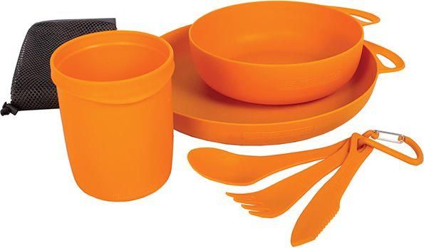 Zestaw kempingowy Delta Camp Sets Sea to Summit Wykonany z polipropylenu, wygodny i lekki zestaw Delta Camp Set składa się z talerza, miski, kubka oraz trzyczęściowego zestawu sztućców. Cały zestaw wykonany został z materiałów wolnych od BPA. Wszystko znajduje się w siatkowym opakowaniu zamykanym na sznurek. Zestaw jest dostępny w trzech kolorach. Zestaw składa się z: Bowl – Miska wykonana została polipropylenu przy zastosowaniu technologii Protex hex. Miska nie zawiera BPA. Posiada owalny uchwyt pomagający w przenoszeniu, mocowaniu lub zawieszaniu oraz strome ścianki boczne. Pokrywka dobrze dopasowana do miski podwaja jej objętość. Pojemność 800ml, waga 78 g; Plate – Talerz wykonany został z polipropylenu, który nie zawiera BPA przy użyciu technologii Protex hex. Posiada owalny uchwyt pomagający w przenoszeniu, mocowaniu lub zawieszaniu. Pojemność 1000ml, waga 105 g; Mug – Do produkcji kubka zastosowano technologię Protex hex, która zmniejsza jego wagę oraz straty cieplne. Użyty do jego produkcji polipropylen nie przyjmuje zapachów i nie ulega przebarwieniu - nie zawiera BPA. Pojemność 473ml, waga 62g; Curtlery – W skład zestawu sztućców wchodzi krótki nóż, widelec i łyżka zaprojektowane tak, aby można włożyć do miski Delta Bowl. Dostarczony karabinek umożliwia powieszenie lub spięcie zestawu. Ostrze noża w połowie jest ząbkowane a na końcu gładkie;