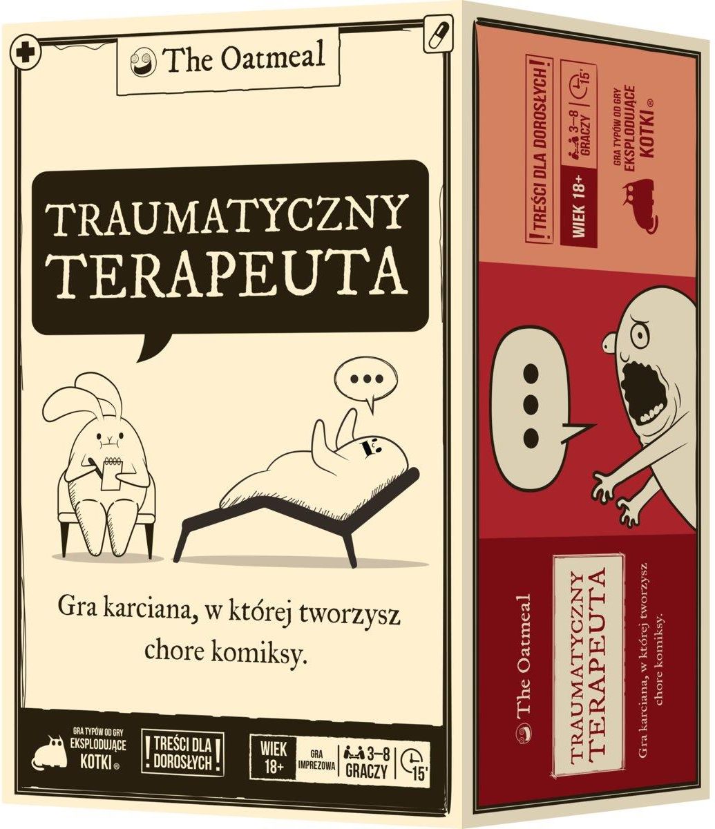 TRAUMATYCZNY TERAPEUTA Gra karciana, w której tworzysz chore komiksy Traumatyczny terapeuta to imprezowa gra karciana dla dorosłych, w której, zagrywając karty, tworzycie krótkie historyjki komiksowe o terapii. Aby wygrać, należy zaproponować najśmieszniejsze zakończenie komiksu.  …