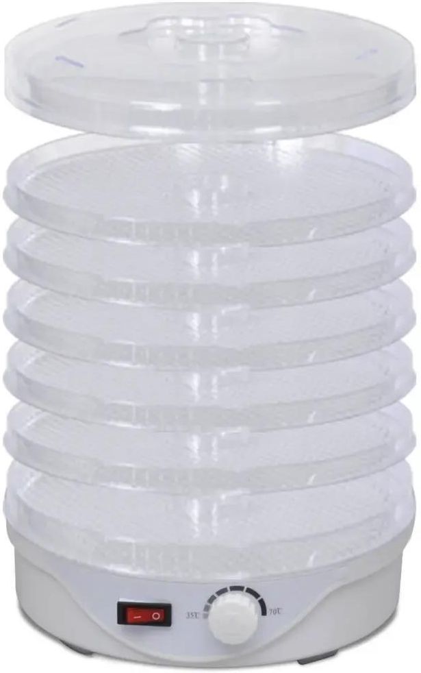 Ten dehydrator z 6 tacami stanie się znakomitym dodatkiem w Twojej kuchni. Dzięki niemu nie tylko będziesz w stanie z łatwością wysuszyć rozmaite produkty spożywcze, jak owoce, warzywa, grzyby czy zioła, a także przygotować zdrowe przekąski dla Twojej rodziny. Wraz z wysychaniem produktów spożywczych naturalny smak i cukry koncentrują się, nadając im słodszy i mocniejszy smak niż świeżej żywności. Suszenie zachowuje ważne składniki odżywcze, które gotowanie często niszczy. Ponieważ nie dodaje się cukru ani innych dodatków, suszone pokarmy zapewnią pyszne i zdrowe przekąski dla Twojej rodziny. Ponadto suszona żywność przechowuje się dłużej i jest lżejsza. Ta suszarka do żywności ma przezroczystą górę, co umożliwia monitorowanie procesu suszenia. Zmniejsza ona czas odwadniania znacząco, dzięki czemu uzyskasz pyszną, suszoną żywność w ciągu kilku godzin, a nie dni! W przeciwieństwie do tradycyjnego sposobu suszenia z obracaniem tacki, urządzenie używa wentylatora, który wymusza przepływ powietrza sprawiając, że cała żywność na każdej tacy suszona jest równomiernie i bez mieszania smaków. Ta suszarka do żywności jest również wyposażona w system regulacji temperatury, aby spełnić różne wymagania różnych produktów spożywczych. Efektywny dehydrator jest łatwy w użyciu: po prostu go umyj, umieść żywność na tackach, ustaw odpowiednią temperaturę i włącz urządzenie. W ciągu kilku godzina Twoje produkty spożywcze są wysuszone i gotowe do spożycia i przechowywania. Możesz teraz zaoszczędzić pieniądze, przygotowując swoje własne paski suszonej wołowiny, suszone owoce i warzywa, mieszanki owoców i orzechów i wiele więcej. Zasilanie: 220-240 V~, 50 Hz Moc: 250 W Wymiary: 24,5 x 25,5 cm (śr. x wys.) Włącznik/wyłącznik Z 6 przezroczystymi tackami Maksymalne obciążenie każdej tacki: 1 kg Regulowana temperatura od 35 do 70°C