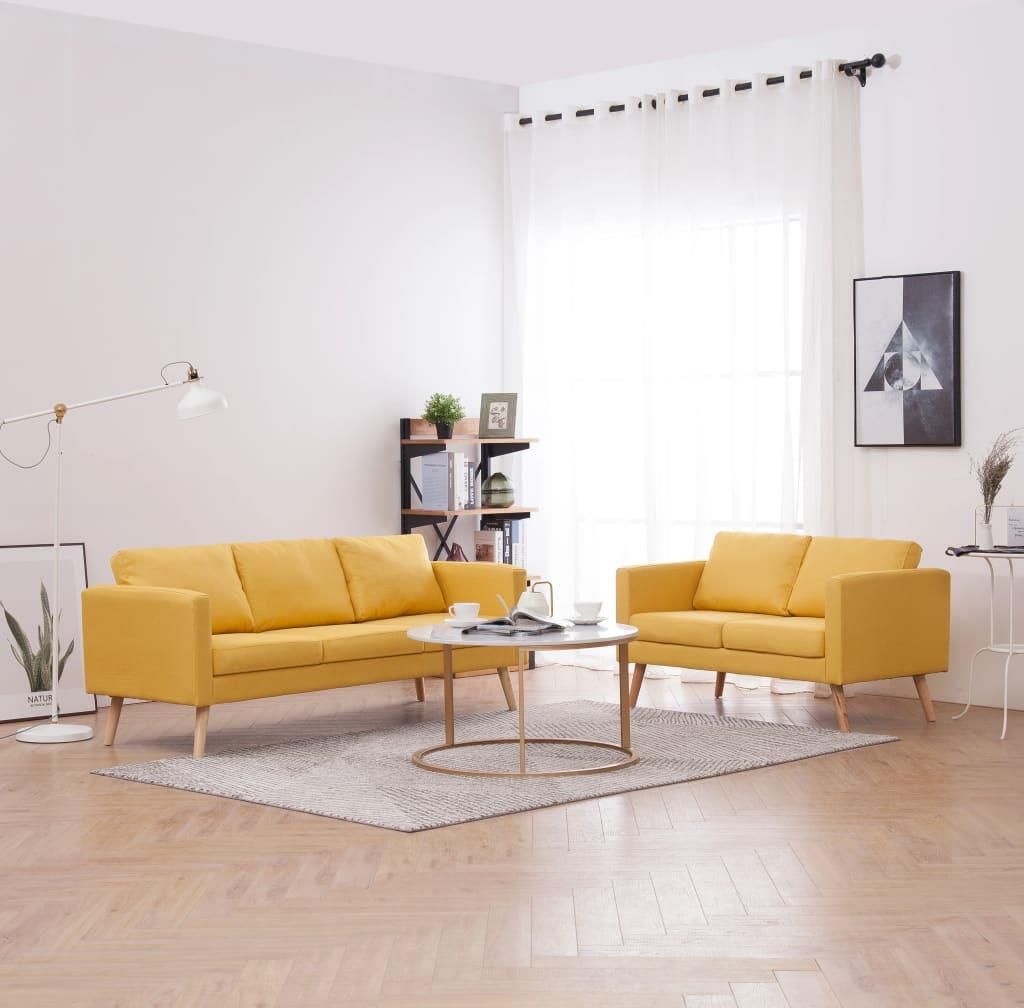 Zdjęcie vidaXL Zestaw 2 Sof Tapicerowanych Tkaniną Żółty - Jeziorany
