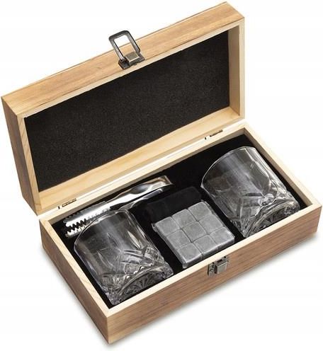 Zestaw do whisky Adare, brązowy Zestaw do whisky składający się z dwóch zdobionych szklanek, szczypców, 9 kamieni do schładzania napoju oraz welurowego woreczka do kamieni. Całość znajduje się w drewnianej eleganckiej skrzynce. HelloShop material_wykonania: szkło kolor_podstawowy: brązowy wymiary: …